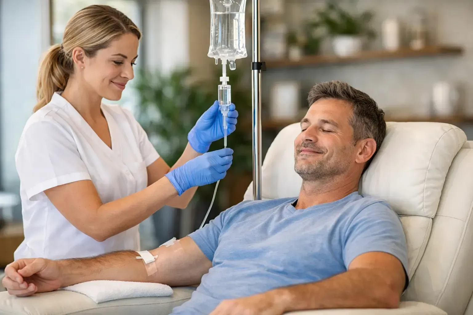 The procedure involves a minor pinch during the initial needle insertion. We employ highly trained medical staff who use advanced techniques to ensure maximum comfort throughout the entire process. Once the line is secure, you can relax, read, or work without any ongoing discomfort.